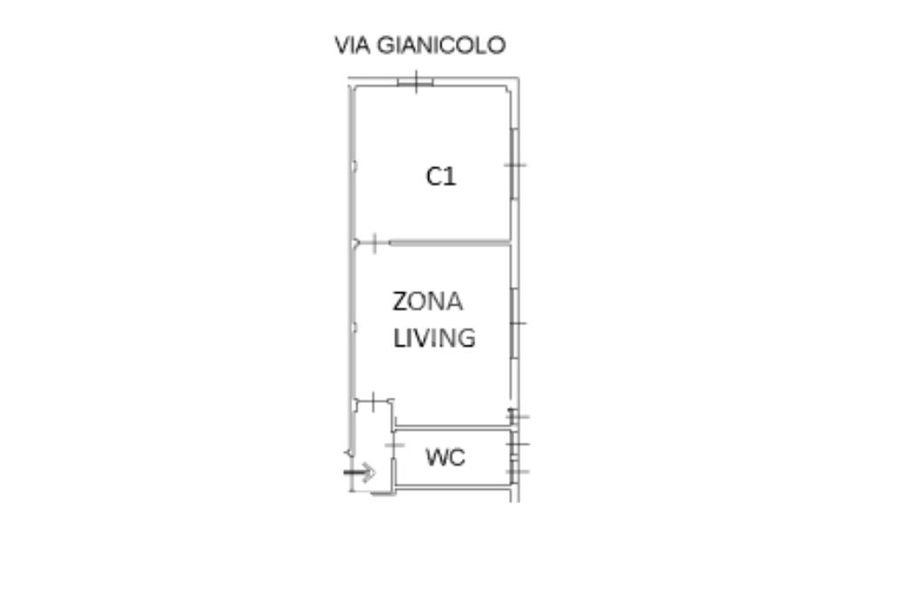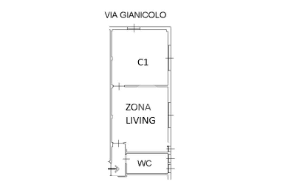 Ingresso in disimpegno, dal quale abbiamo l’accesso ai vari ambienti della casa e dove rispettivamente troviamo, subito la luminosa zona living, con cucina a vista e con affaccio piacevole sulla corte interna. Successivamente troviamo l’ampia camera matrimoniale, anch’essa finestrata con affaccio tranquillo sulla via principale e per finire, bagno finestrato con box doccia.