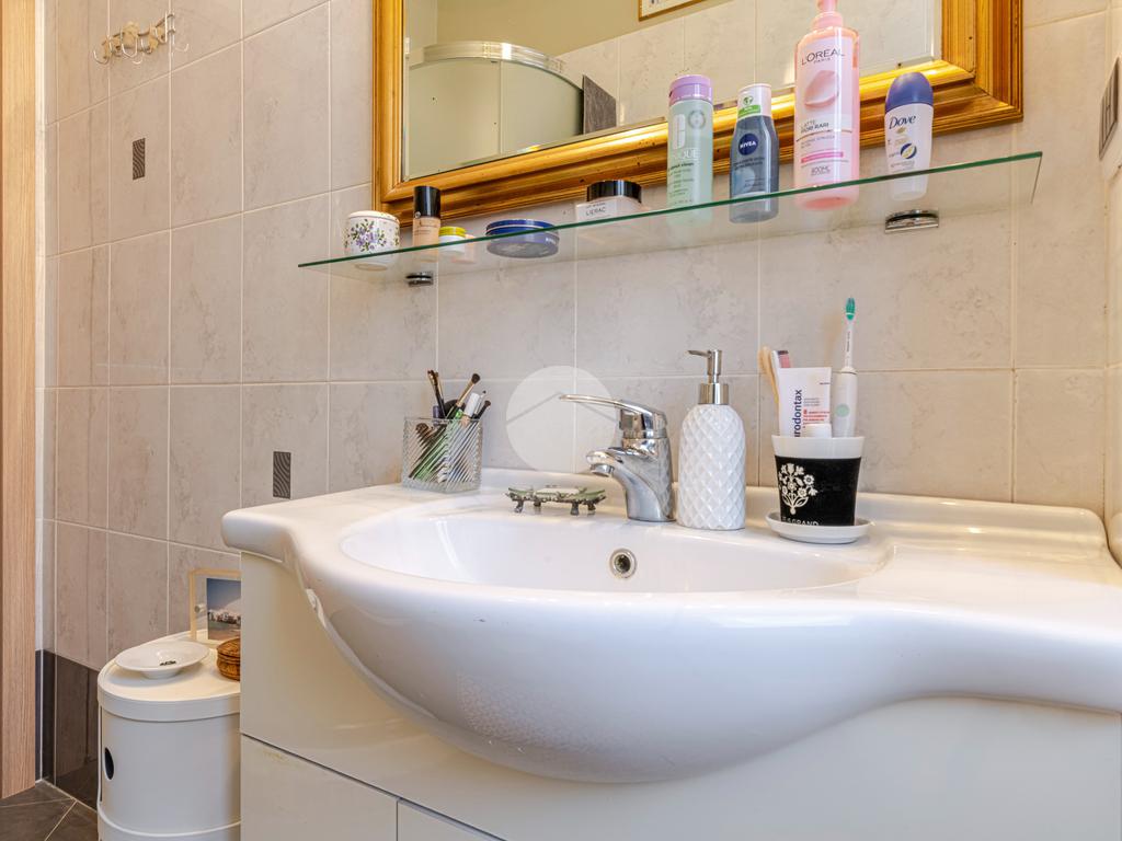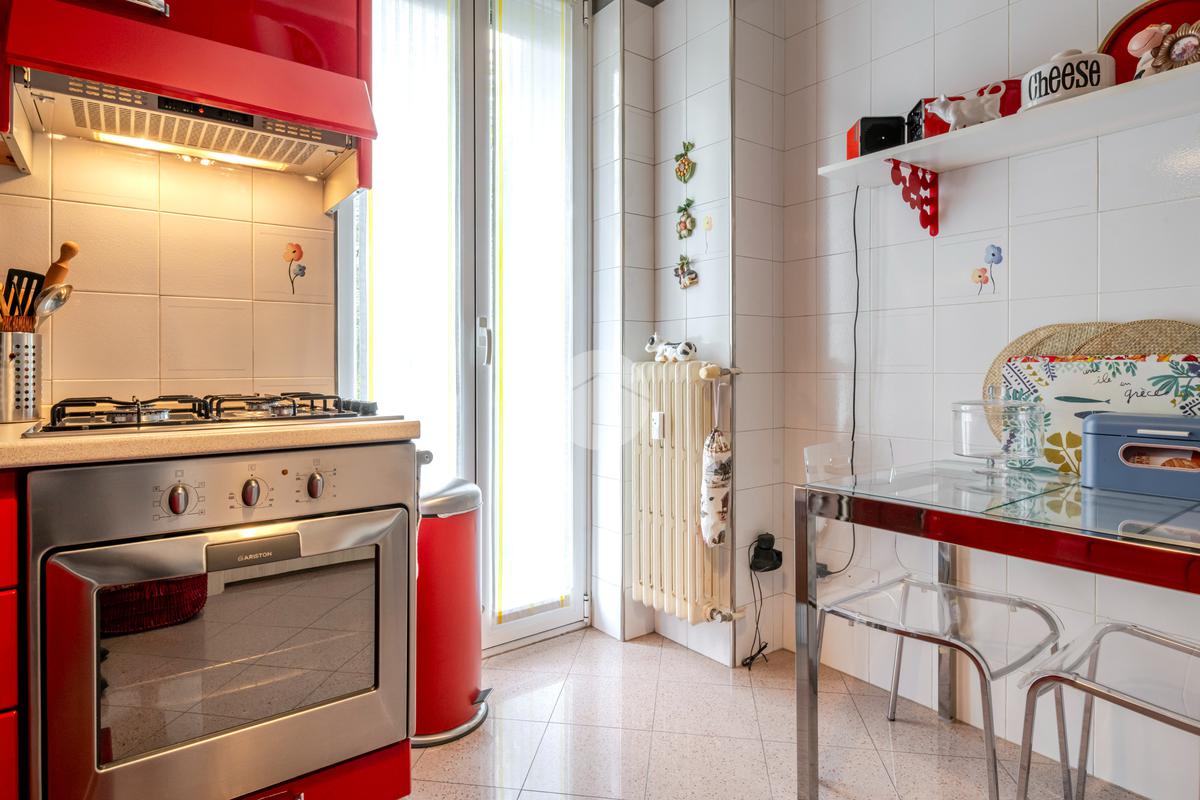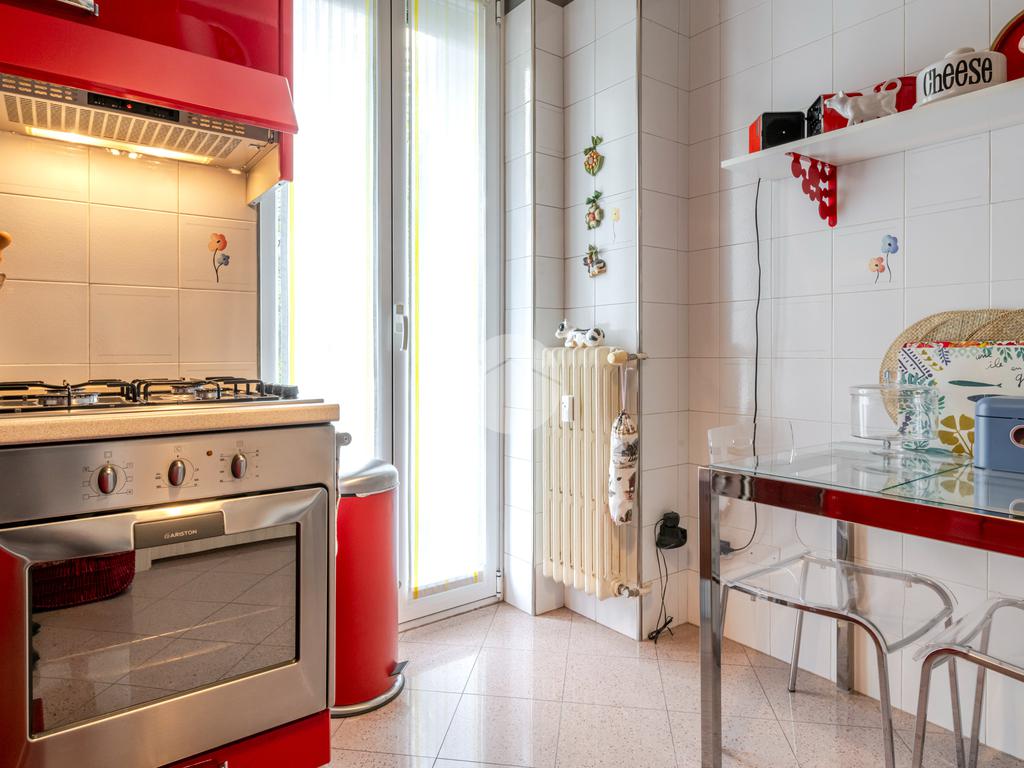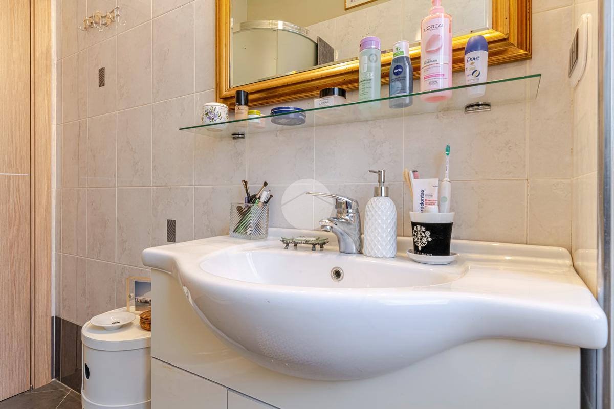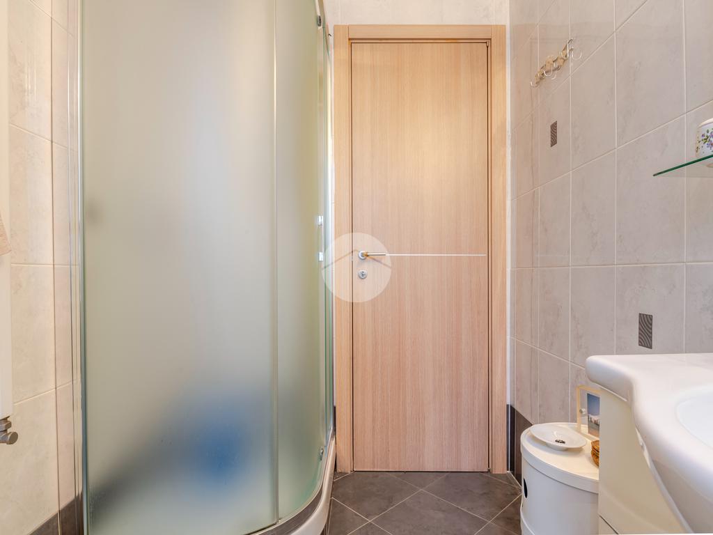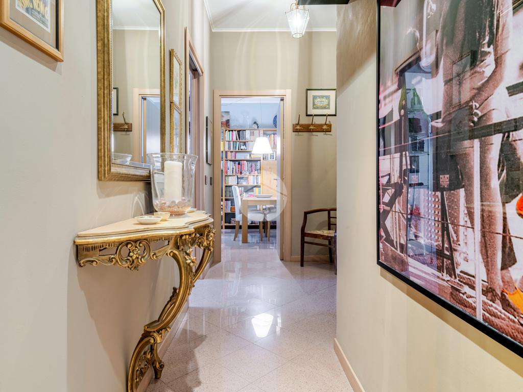 L’appartamento è stato ristrutturato nel 2010 e tenuto in OTTIMO STATO; presenta una pavimentazione in graniglia in tutti gli ambienti, ad eccezione del bagno, dove troviamo gres porcellanato scuro. Completa la proprietà una porta blindata, infissi in doppio vetro PVC, impianto di aria condizionata in ogni ambiente, riscaldamento centralizzato e una cantina di pertinenza.