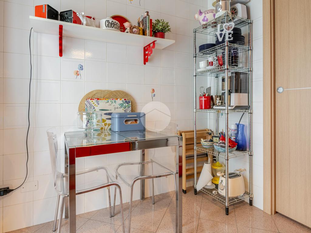 Considerando la buona ottimizzazione degli spazi già presente all’interno dell’appartamento, la zona soggiorno offre diverse possibilità di personalizzazione: può facilmente essere trasformata in una seconda camera matrimoniale, oppure — per gli amanti delle zone living ampie e luminose — si potrebbe valutare l’eliminazione della parete che attualmente separa la cucina, creando così un ambiente unico e moderno.