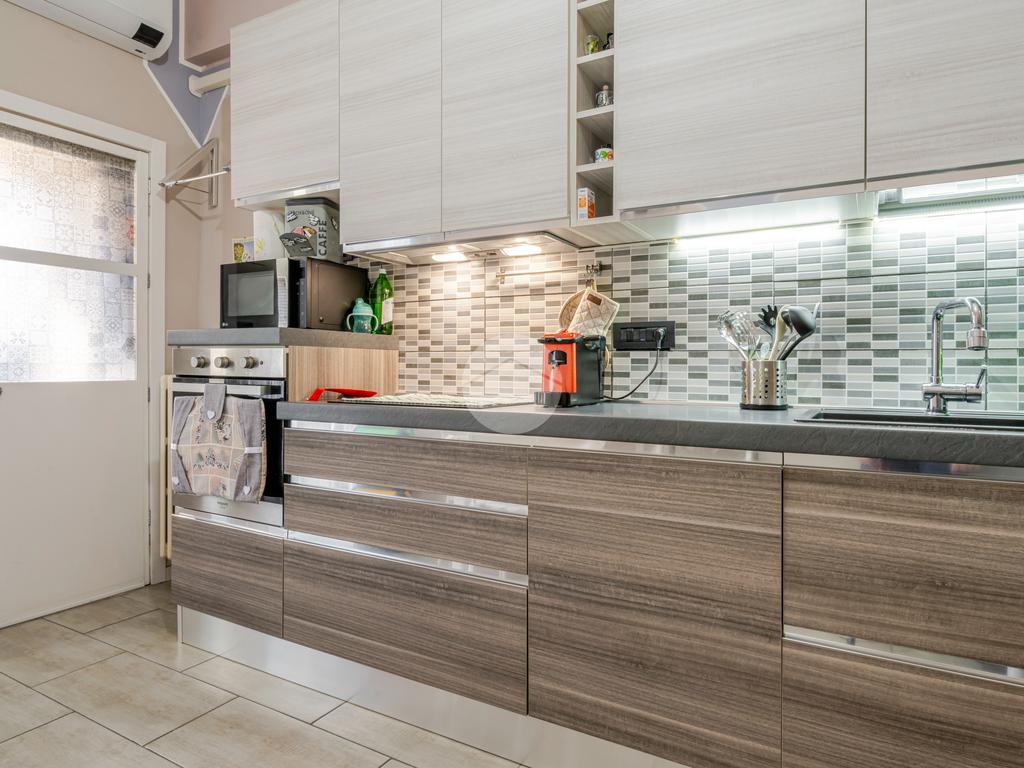 L'appartamento è in OTTIMO STATO INTERNO; presenta una pavimentazione in piastrelle di gres porcellanato, in tutti gli ambienti, ad eccezione del bagno, dove troviamo una pavimentazione in ceramica. Completa la proprietà una porta blindata, infissi in doppio vetro in pvc, aria condizionata con split di ultima generazione ( Samsung Windfree) e zanzariere presenti in tutti gli infissi.